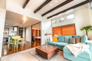 延床面積180㎡、3LDKのデザイナーズ建築の一軒家です。中に入るとカラフルでお洒落なインテリアに目が引かれ、心躍ります。木のぬくもりに包まれながらごゆっくりおくつろぎください。お食事には、バルコニーで溶岩石プレートを使ったグリルでのBBQが楽しめます。焦げづらく、ふっくら焼き上がるのでお肉がより一層おいしく召し上がれます。
